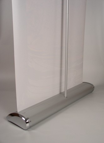 "Delfiny" są to wysokiej klasy stojaki, które zachowują ten sam system montażu grafiki jak np. rollup-y "High Standard" - czyli: baner u góry jest zaciśnięty w zatrzaskowej poprzeczce, a u dołu jest przyklejony do wałka za pomocą odpowiedniej taśmy rozbiegowej.
